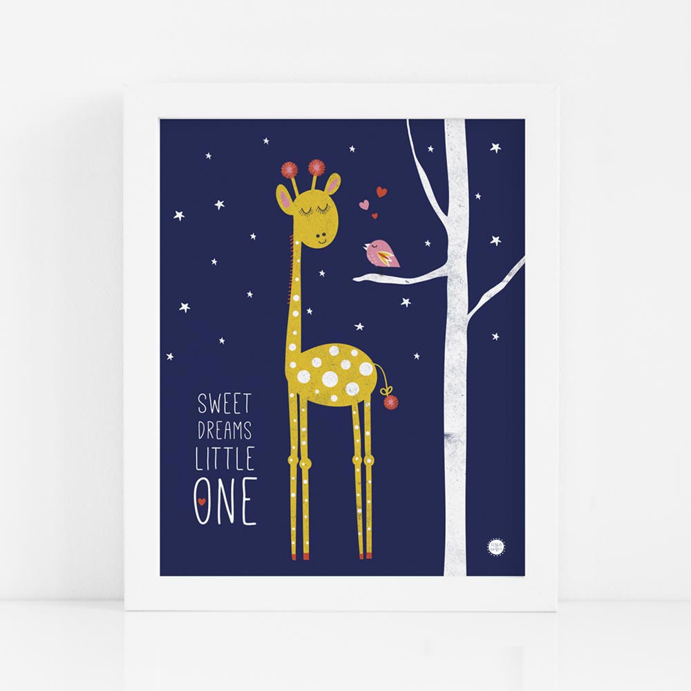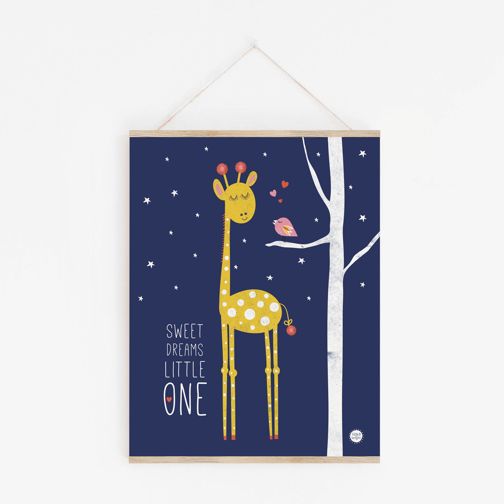 Giraffe & Bird is a lovely scene to add calm & colour to your kids room or babies nursery. It may even help lull your little ones to sleep!