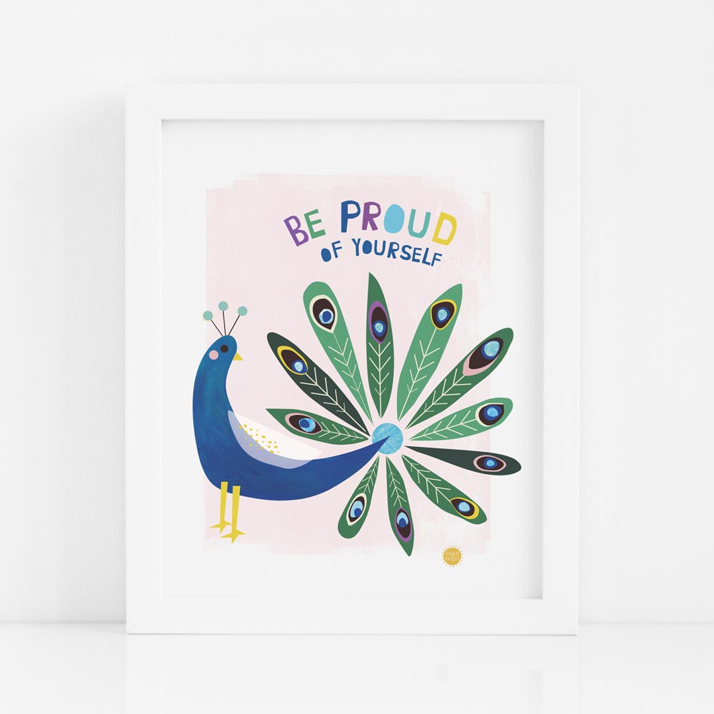 Our proud peacock is here to remind you to "BE PROUD OF YOURSELF"