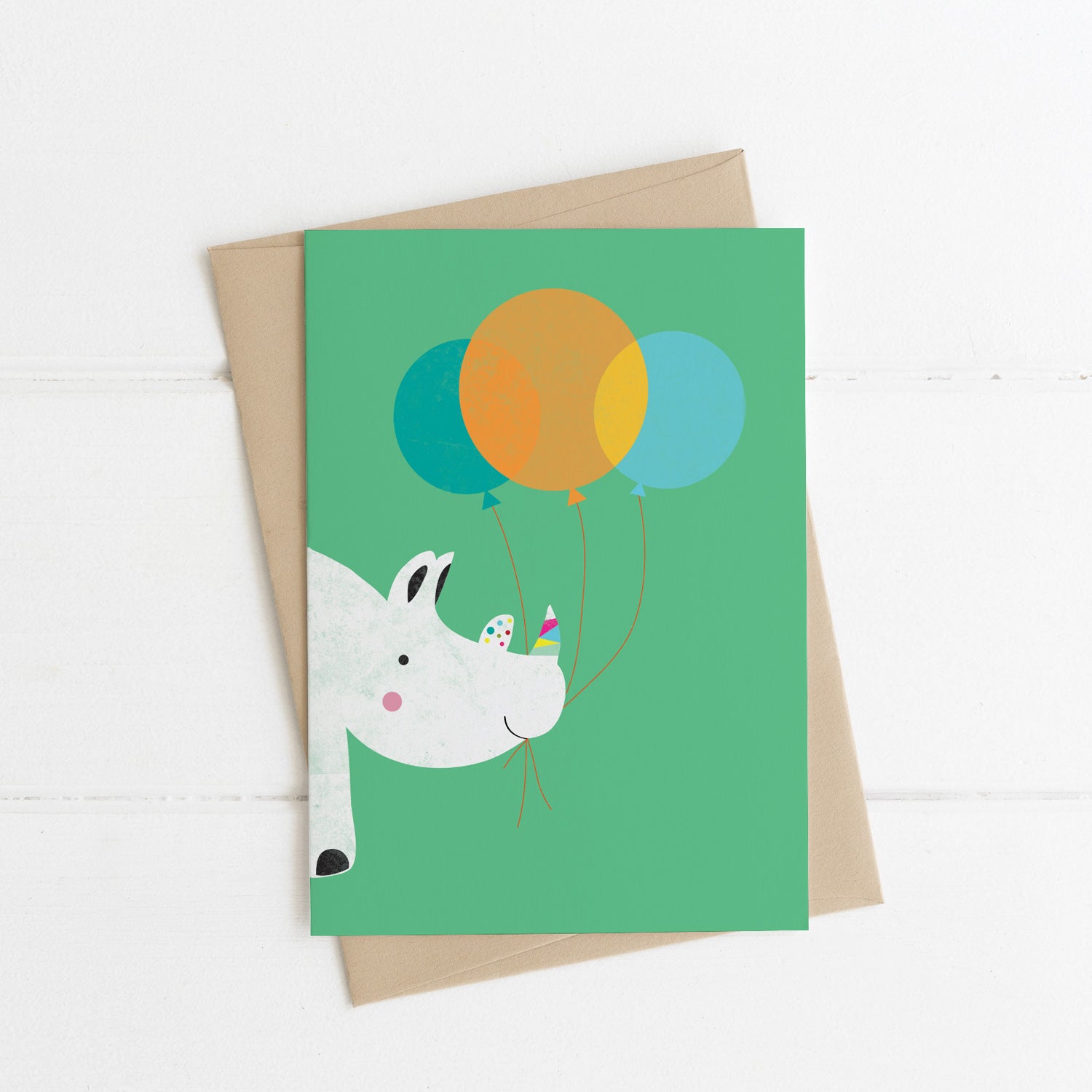 Rhino with Balloons Card